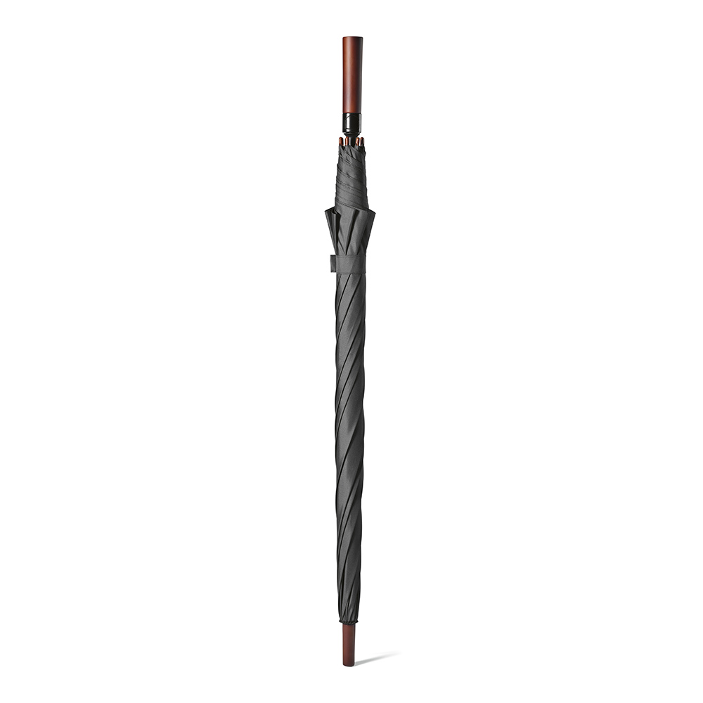 Esiet gatavi lietum ar mūsu 32 collu golfa lietussargu. Ar rPET paneļiem, stikla šķiedras kātu un ribām tas ir vēja necaurlaidīgs lietussargs ar automātisku atvēršanu. Aizveriet to ar atbilstošās krāsas velcro siksniņu. Ērts tumša koka rokturis un individuāls rPET maisiņš.