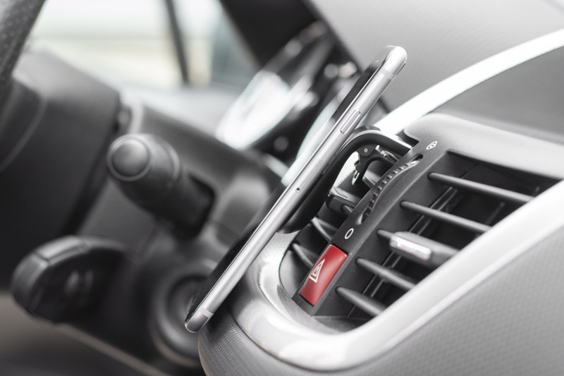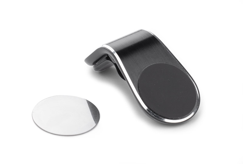 Magnētiskais telefona turētājs lietošanai automašīnas ventilācijas režģī. Ērts klipsis telefona piestiprināšanai. Komplektā divas magnetiskās plāksnītes.
