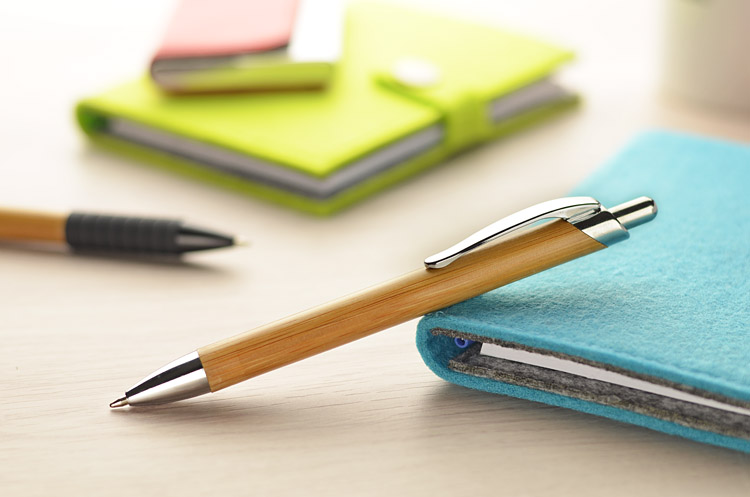 Stilīga lodīšu pildspalva ar bambusa korpusu. Neticami jauka pieskāriena tekstūra koka korpusam ieinteresēs ikvienu lietotāju. Lodīšu pildspalva ir apdarināta ar metāla elementiem sudraba krāsā. Marķējumu var novietot uz lodīšu pildspalvas korpusa.