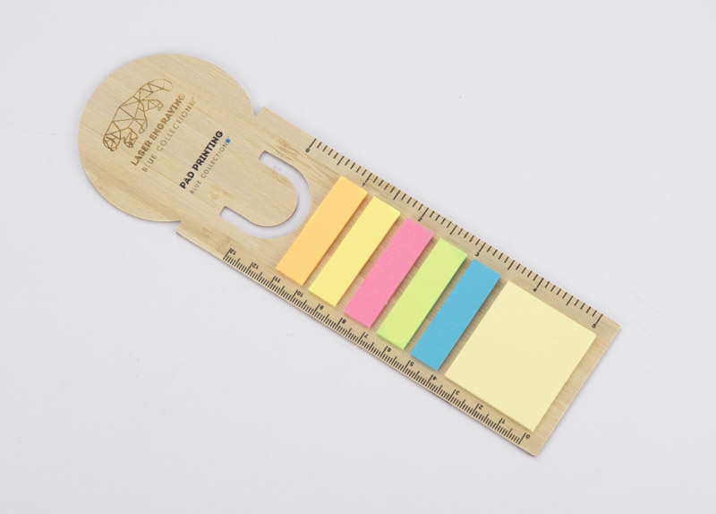 Bambusa lineāls ar līmlapiņām ir praktisks un funkcionāls sīkrīks. Lineālu var izmantot kā grāmatzīmi, un krāsainās piezīmju lapiņas ir noderīgas piezīmju atzīmēšanai.