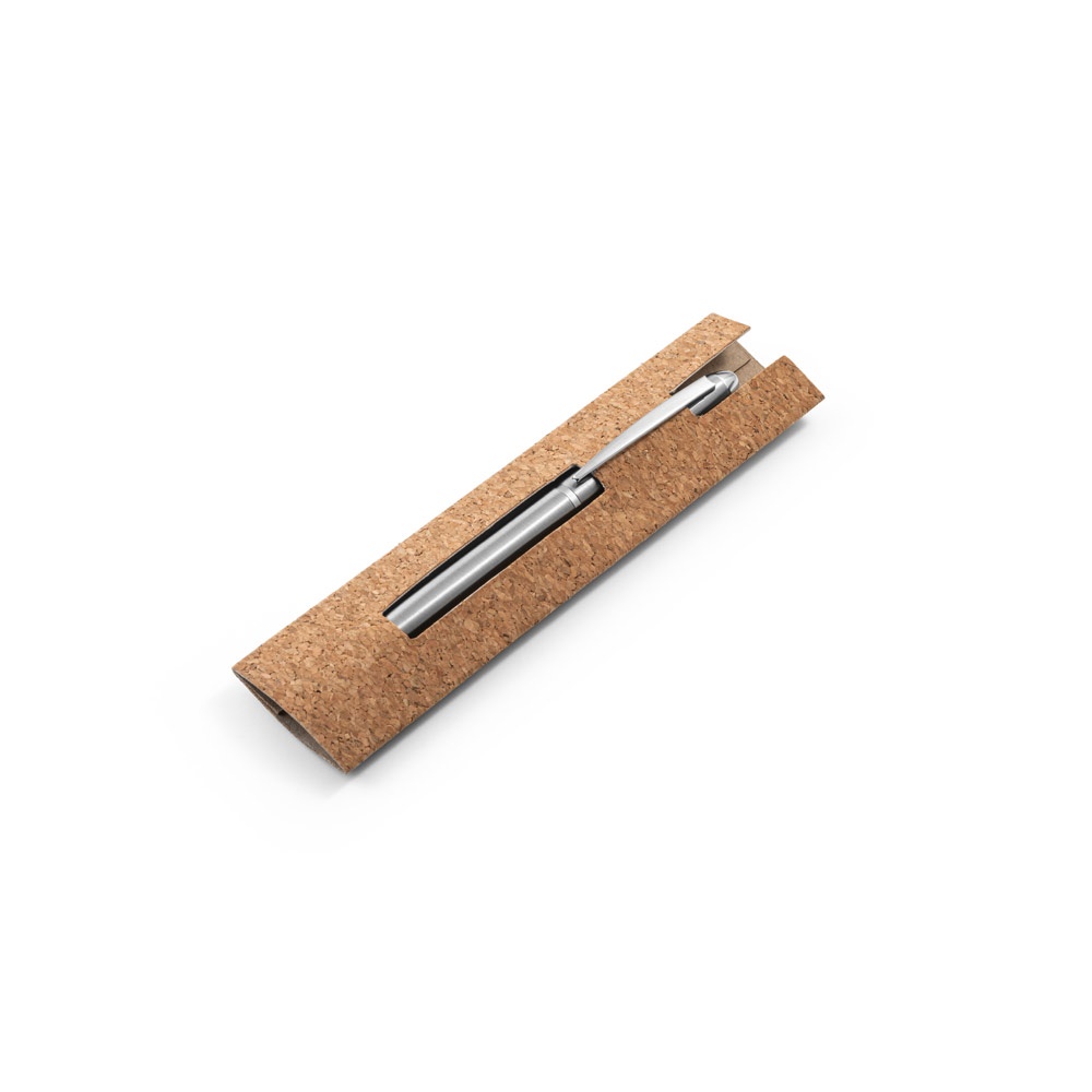 Lodīšu pildspalva ar nerūsējošā tērauda korpusu (53% pārstrādāta) ar saspraudi. Lodīšu pildspalvai ir melna tinte un vērpšanas mehānisms. Piegādāts korķa dāvanu maisiņā. Lodīšu pildspalva: ø11 x 137 mm | Maisiņš: 155 x 40 mm
