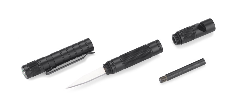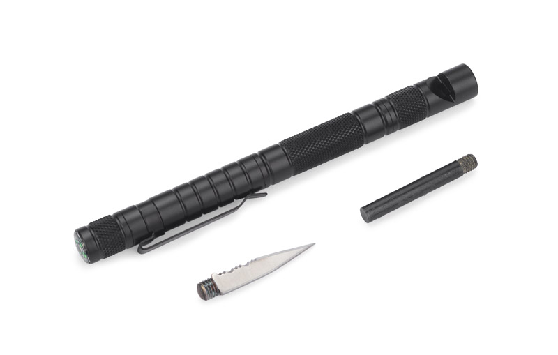 Kompakta ierīce, kas apvieno ļoti noderīgas funkcijas: kompasu, volframa stikla lauzēju, asmeni, svilpi.
