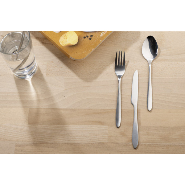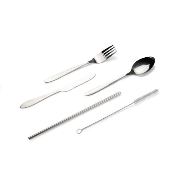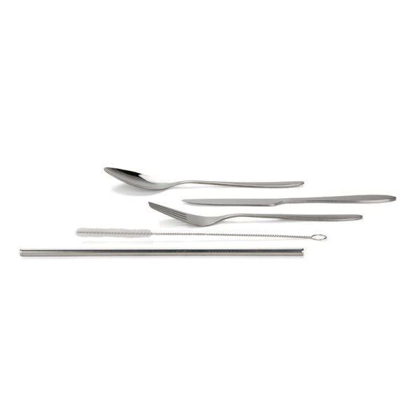 ZUNA galda piederumu komplekts ir praktisks metāla komplekts, kas ir ideāli piemērots lietošanai ceļā, darbā vai pusdienās. Komplektā ietilpst nazis, dakšiņa, karote, metāla salmi un suka tā tīrīšanai. Viss komplekts ir iepakots mīkstā neoprēna maisiņā, lai aizsargātu saturu un ērtu uzglabāšanu. Funkcionāls un estētiski patīkams komplekts, kas izrādīsies praktisks reklāmas sīkrīks.