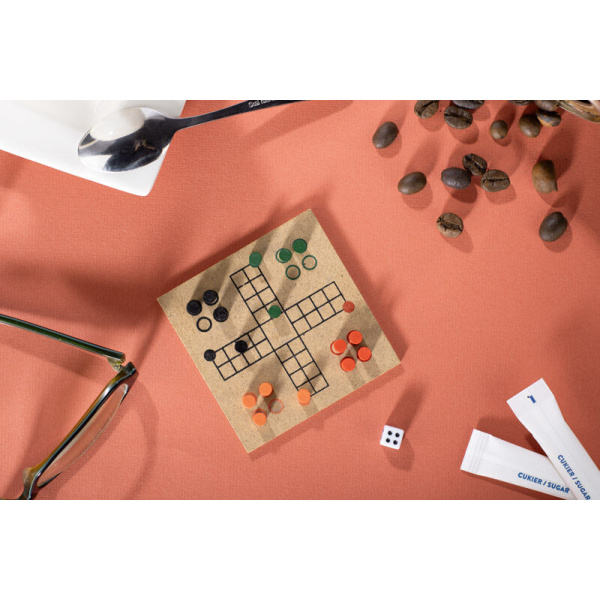 SPIL ir klasiskās spēles Ludo miniatūra versija. Kompaktais papīra komplekts ar koka gabaliem ir lielisks reklāmas sīkrīks. Ar savu mazo izmēru tas ir lieliski piemērots ceļojuma izmēra dāvanai. Ideāli piemērots personalizācijai, tas kalpo kā unikāls mārketinga rīks, kas izcels jūsu zīmolu.