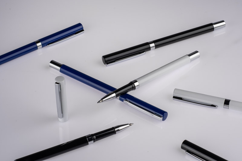 IDEO is a gel pen of classic shape. It is made of metal covered with paint with vivid colours. Chrome finishes. Thin blue 0.5 mm-thick gel refill.