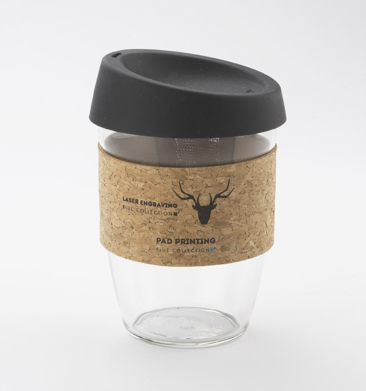 Krūze ir izgatavota no augstas kvalitātes borsilikāta stikla, kas ir izturīgs pret karstumu. Korķa siksniņa atvieglo tās satveršanu, novērš apdegumus un izslīdēšanu no rokām. Vāks ar dzeršanas atveri ir izgatavots no silikona.