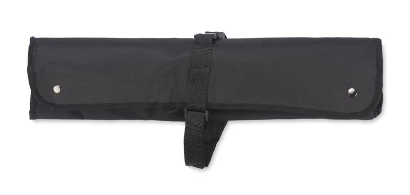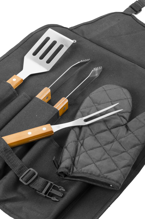 Grila komplekts ar cimdu un priekšautu, kas darbojas arī kā korpuss. Komplektā ir visnepieciešamākie instrumenti grilēšanai: knaibles, dakšiņa un lāpstiņa. Priekšauts aizsargā apģērbu pret traipiem, un cimds aizsargā pret apdegumiem.
