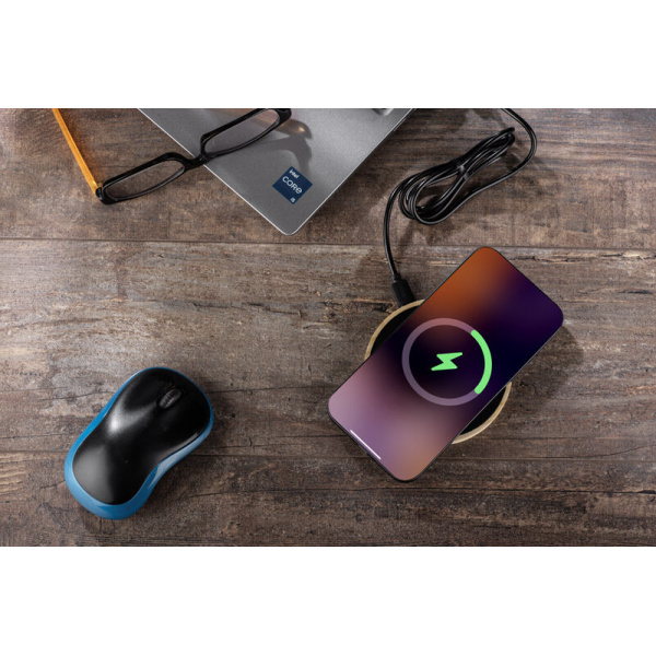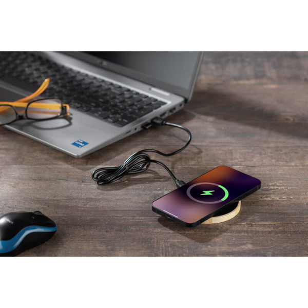 FRESTI 15W apaļais bezvadu lādētājs ar korpusu, kas izgatavots no dabīgā bambusa. Pateicoties vieglajam un plānajam dizainam, tas ir parocīgs un estētiski. Noņemamais melnais kabelis nodrošina ērtu lietošanu. Ideāli piemērots kā reklāmas sīkrīks, apvienojot mūsdienu tehnoloģijas ar dabisku dizainu.