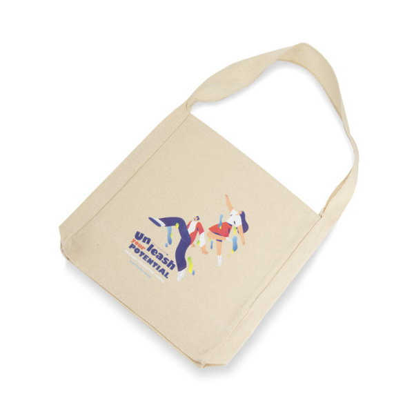 ARPO kokvilnas maisiņš ar svaru 200 g/m² ir izturīga un praktiska izvēle ikdienas lietošanai. Aprīkots ar vienu garu siksnu, tas ļauj ērti nēsāt plecus. Paplašinātās malas un apakšdaļa nodrošina pietiekamu ietilpību, padarot to ideāli piemērotu iepirkšanās vai citiem mērķiem. Izgatavots no izturīga materiāla, tas ir ideāli piemērots logotipa personalizēšanai. Funkcionāls sīkrīks reklāmas aģentūrām, kas novērtē kvalitāti un ērtības.
