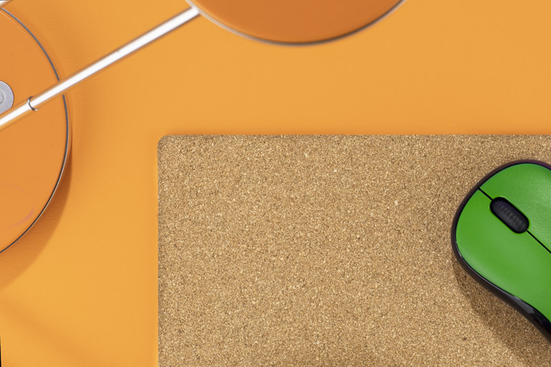 Datorpeles paliktnis, izgatavots no dabīgā korķa.