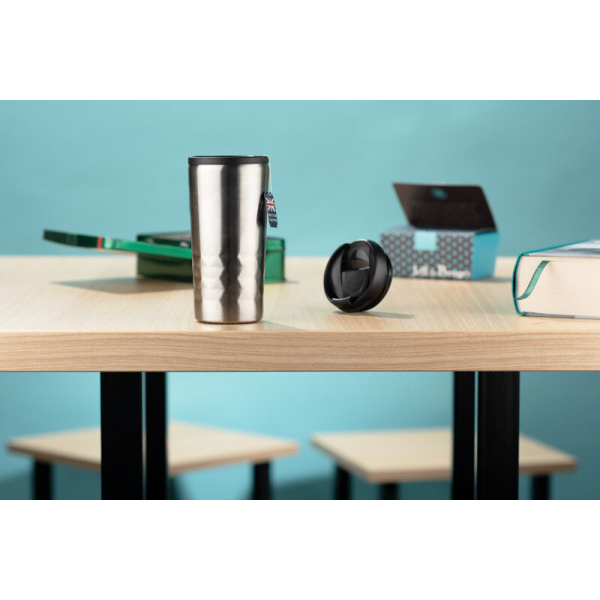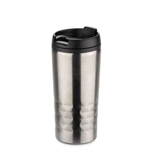 GALI krūze ir praktiska krūze automašīnai, ideāli piemērota dzērieniem ceļā. Izgatavots no metāla, tam ir skrūvējams vāciņš ar ērtu iemutni un plastmasas interjeru. Tā gofrētā virsma piešķir mūsdienīgu izskatu un drošu saķeri. 250 ml ietilpība padara to kompaktu un ērtu lietošanu. Tas ir ideāli piemērots kā reklāmas sīkrīks ar zīmola iespēju.