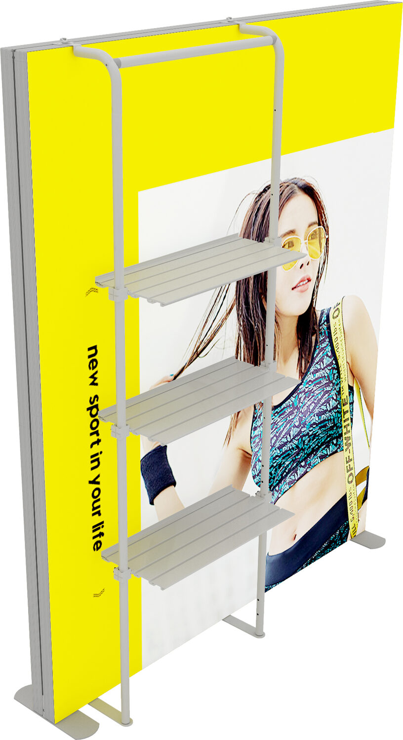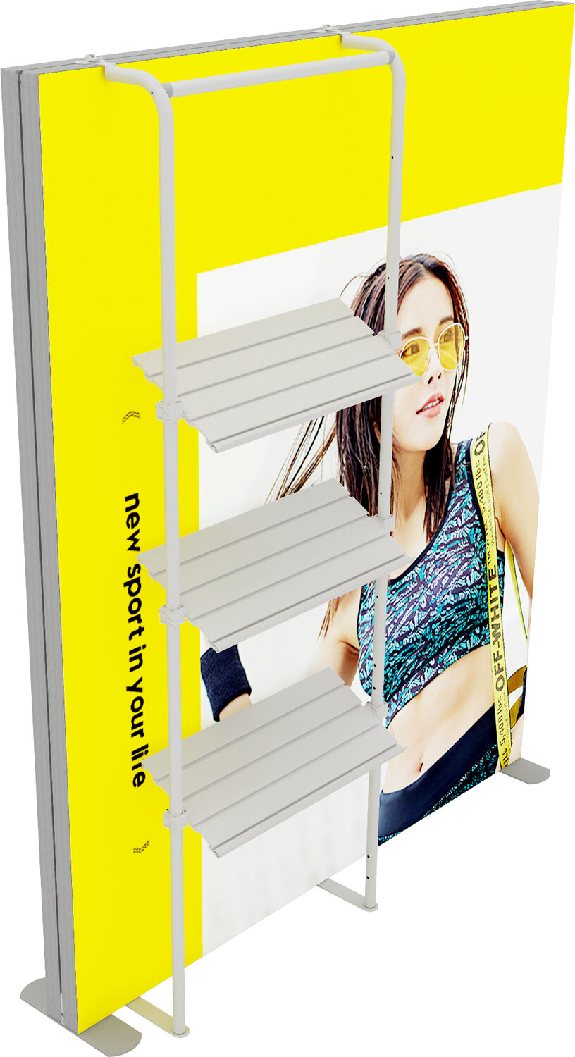 Praktiska plauktu sistēma. Šis vienkāršais risinājums ļauj LUMIX™/LUMIX™ PRO kļūt par vēl funkcionālāku izstāžu vai reklāmas sistēmu.