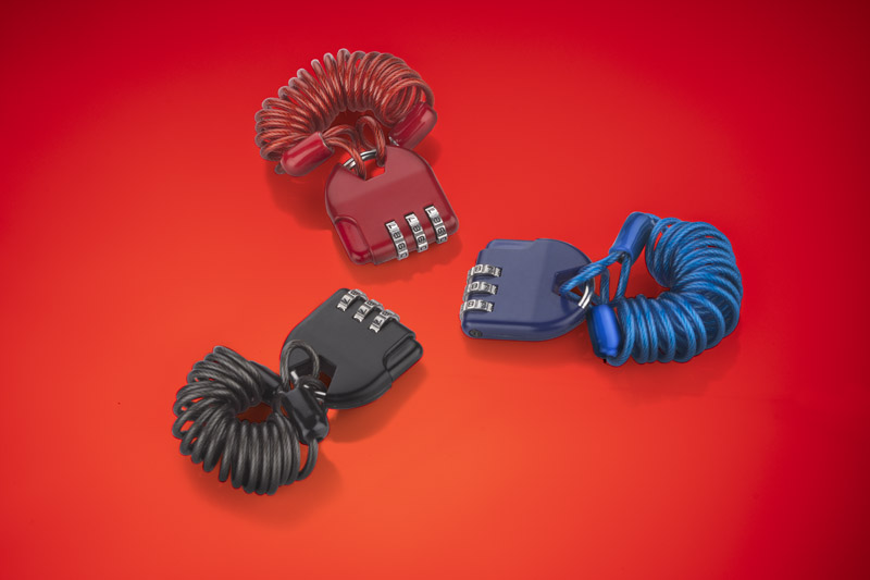 ADO ir ļoti praktiska piekaramā atslēga, kas būs lieliski piemērota ģērbtuves skapīša, čemodāna vai somas aizvēršanai. Pievienotā metāla atsperu virve ļaus izmantot piekaramo atslēgu, lai nostiprinātu velosipēdu vai skrejriteni. Piekaramā atslēga izgatavota no metāla. Tas tiek atvērts, izmantojot lietotāja iestatītu trīsciparu kodu (noklusējuma kodu “000” var mainīt, nospiežot pogu piekaramās atslēgas pusē un atiestatot ciparu diskus uz jaunu kodu).