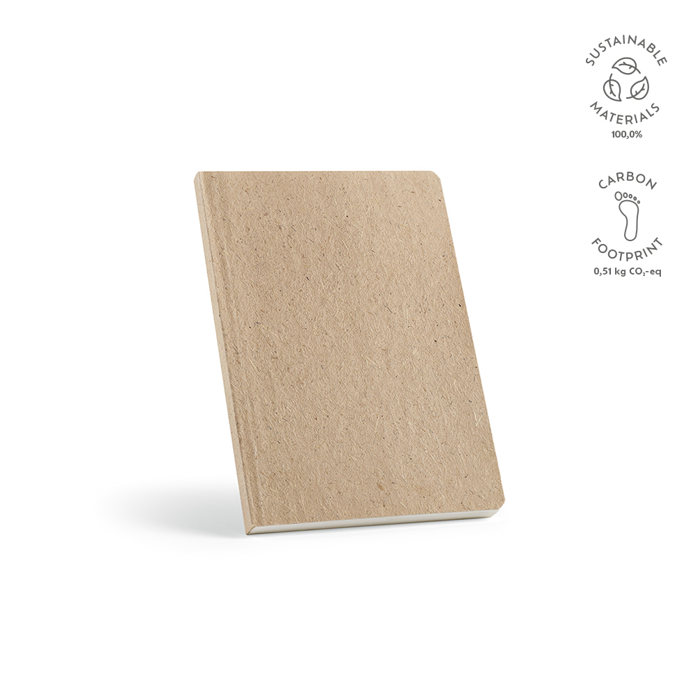 A5 formāta piezīmju grāmatiņa ar mīkstiem vākiem, kas izgatavota no cukurniedrēm. Ar 196 lapām.