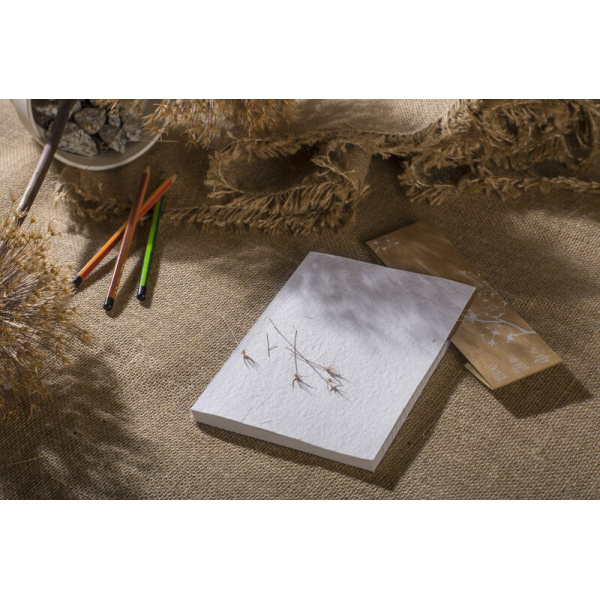 Piezīmju grāmatiņa MARIGOLD ir unikāla piezīmju grāmatiņa ar vāku, kas izgatavots no kokvilnas un kliņģerīšu ziediem, kas satur ziedu sēklas, kas veido 1 līdz 5% no tās svara. Lapas ir izgatavotas no 80 g/m² kviešu salmu papīra, un iekšpusē ir 80 rindu lapas. Piezīmju grāmatiņai ir arī noņemama kraftpapīra grāmatzīme.