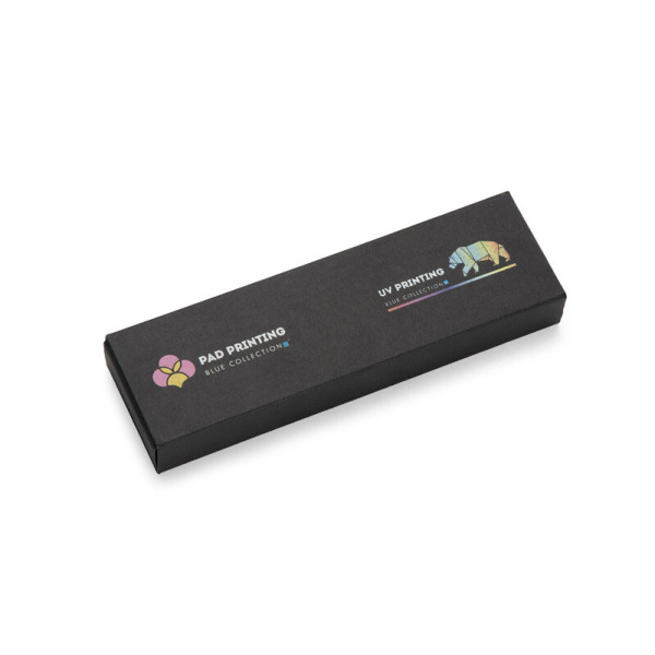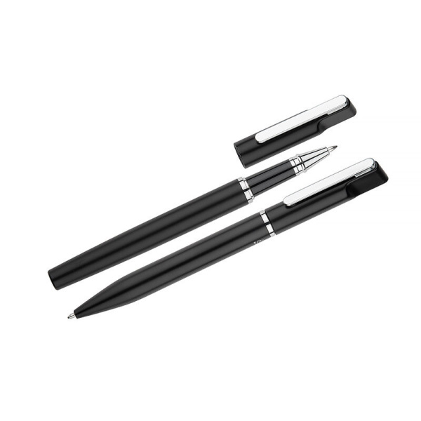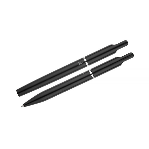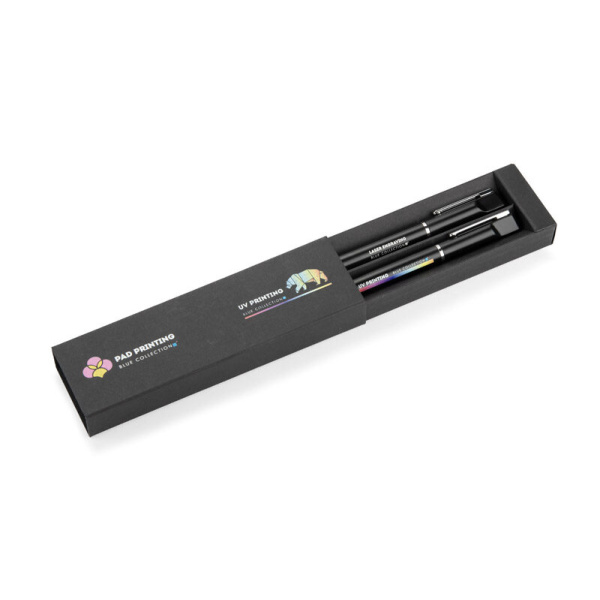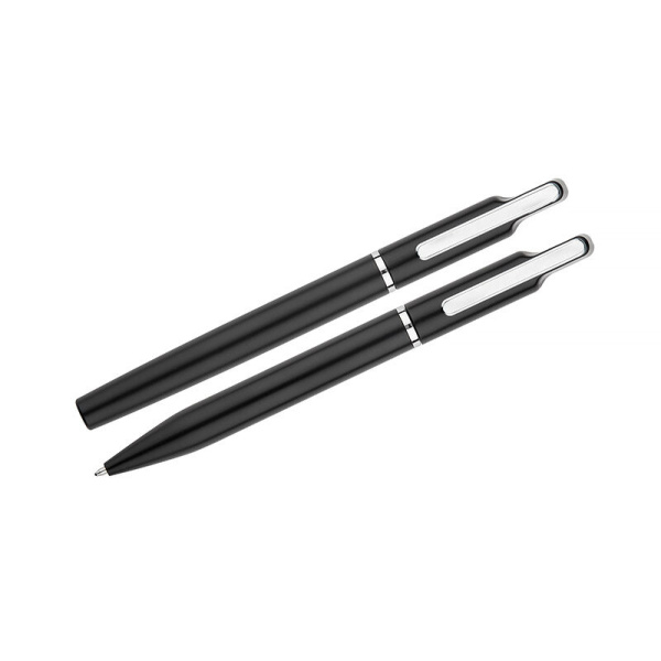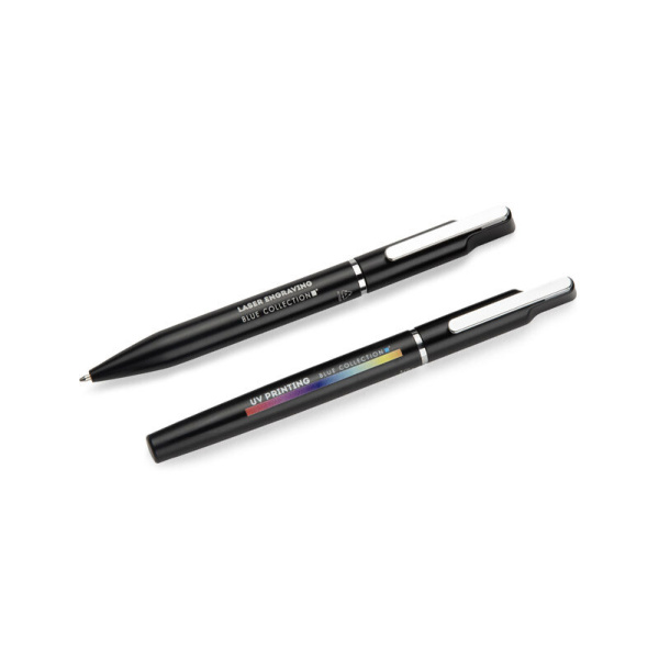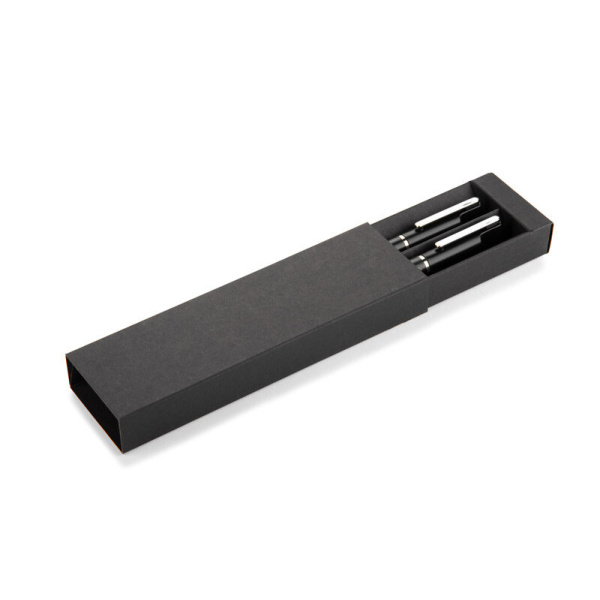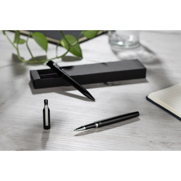 EFAN rakstāmkomplekts ir stilīgs komplekts, kas sastāv no pildspalvas un biros, kas izgatavoti no pārstrādāta alumīnija. Abiem gabaliem ir plāns melns dizains ar matētu apdari un smalkām sudraba detaļām. Pildspalva ir aprīkota ar zilu sprauslu un biros ar melnu sprauslu, abas ar rakstīšanas biezumu 1,0 mm un garumu līdz 500 metriem. Viss iepakots melnā kraftpapīra kastē.