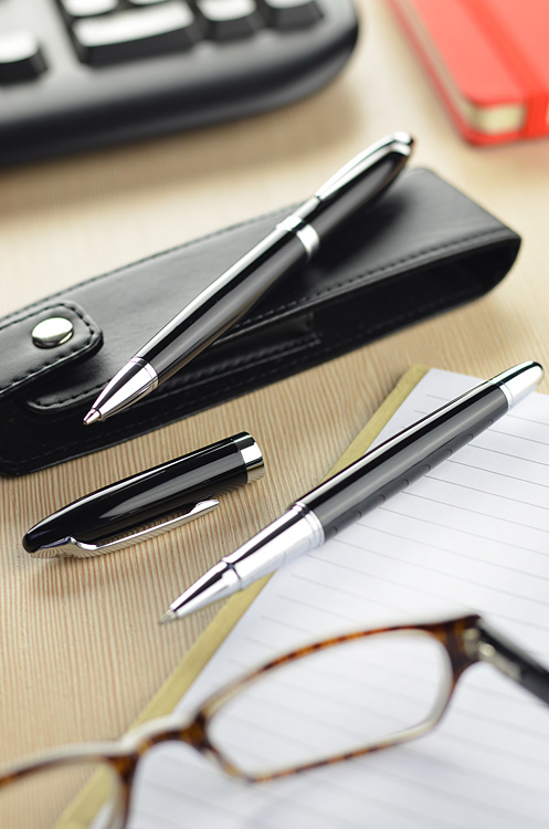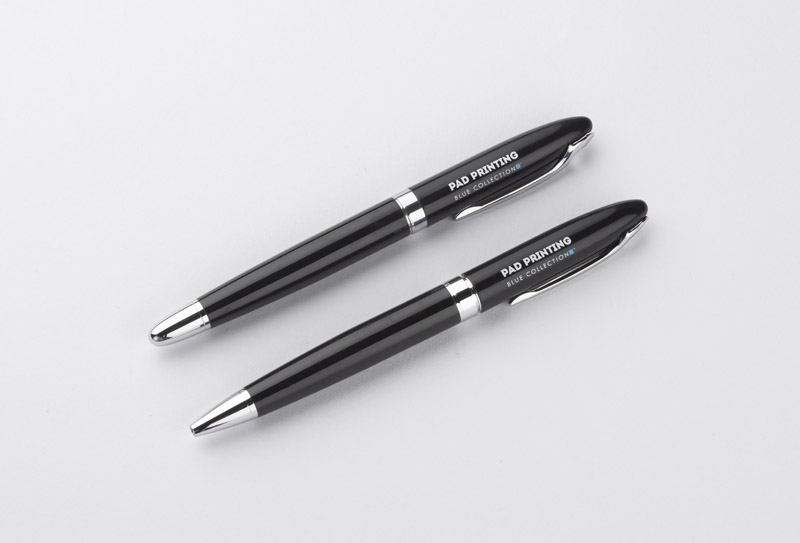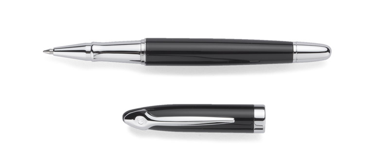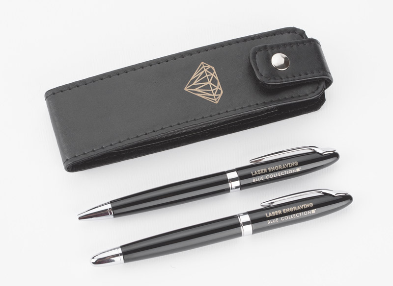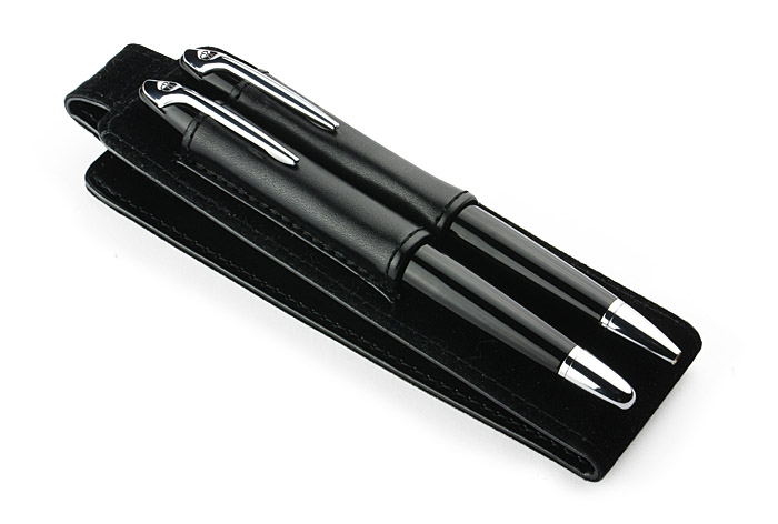 Elegants pildspalvas komplekts, kas sastāv no lodīšu pildspalvas un rullīšu pildspalvas. Iepakots kastē, kas izgatavota no eko-ādas.