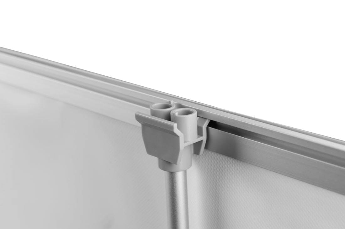 Komplektā ietilpst: Twin roll up kasete, viens stabs, divi “Express Clip” augšējie stieņi , 3M līmlente, pārnēsāšanas soma ar vizītkartes kabatiņu un individuālu kartona kastīti.