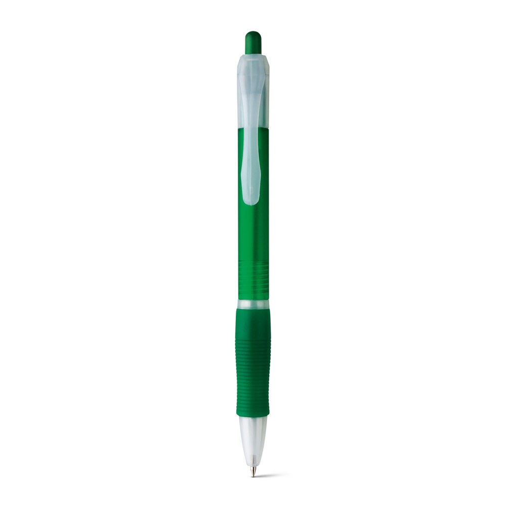 Lodīšu pildspalva ar saspraudi un krāsainu neslīdošu rokturi. Melna tinte. ø10 x 145 mm