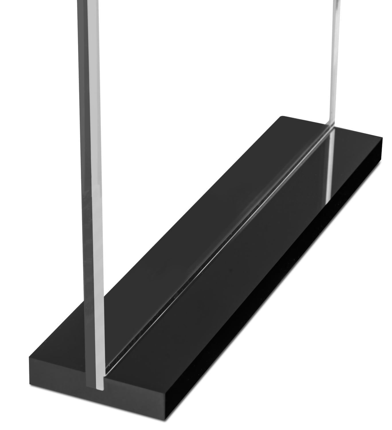 Elegants divpusējs akrila statīvs. Stilīgu izskatu un stabilitāti nodrošina platā pamatne. Informācijas apmaiņa notiek, ievietojot tos starp diviem paneļiem. Statīvs ir lieliski piemērots lietošanai sabiedriskās vietās. t.i., restorāni, bankas un viesnīcas.