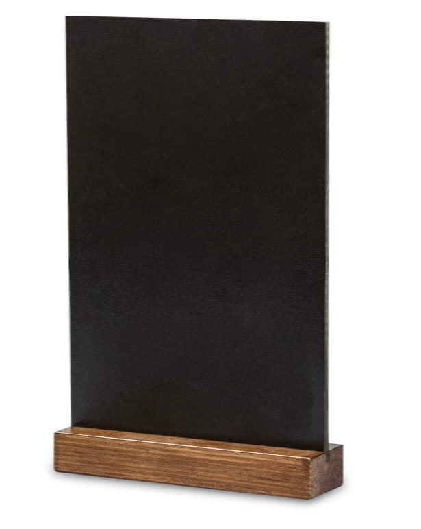 Divpusējais, biezais krīta displeja statīvs ir ideāli piemērots novietošanai uz galda/letes dažādās sabiedriskās telpas, piem. restorāni, bankas, viesnīcas uc. Koka pamatne garantē stabilitāti un elegantu izskatu.