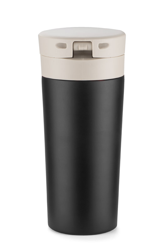 Krūze ar vienkāršu dizainu, kas aprīkota ar slēdzeni, novērsīs nejaušu iemutņa atvēršanu. 350 ml ietilpība ir ideāli piemērota rīta kafijai. Krūze apmierinās arī tējas cienītājus, jo tā ir aprīkota ar papildu sietiņu tējas lapām.