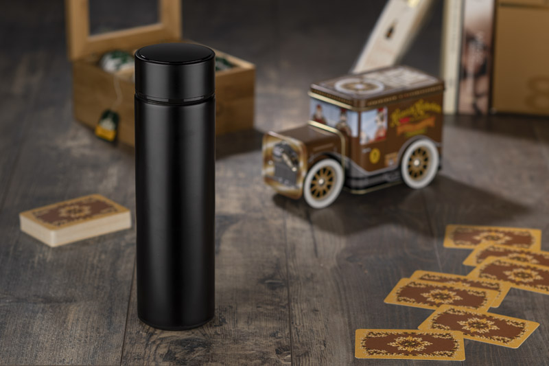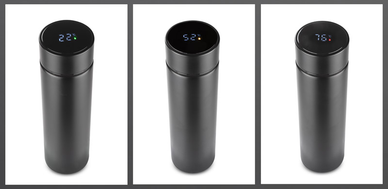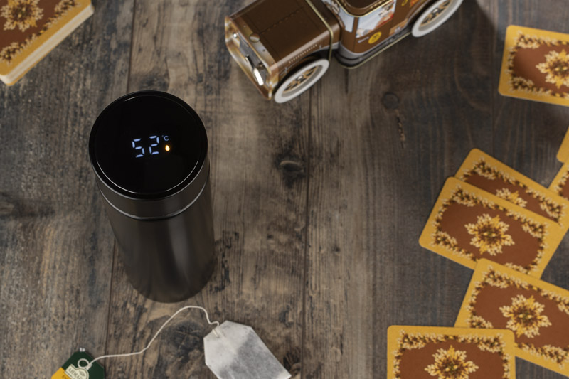 Termosa pudele ir ļoti interesanta ierīce. Tā apvieno klasiskās termosa funkcijas un elektroniku skārienjutīga digitālā termometra veidā, kas iebūvēts vāciņā. Apgriežot pudeli otrādi uz 10 sekundēm, var nolasīt precīzu dzēriena temperatūru. Turklāt tiek parādīta piliena ikona, kas maina krāsu atkarībā no temperatūras: sarkana, kad dzēriens ir karsts, dzeltena, kad tas ir dzerams, un zaļa, kad tas ir auksts. Iekšpusē ir sietiņš, pateicoties kuram tējas pagatvošana ir vienkāršāka.