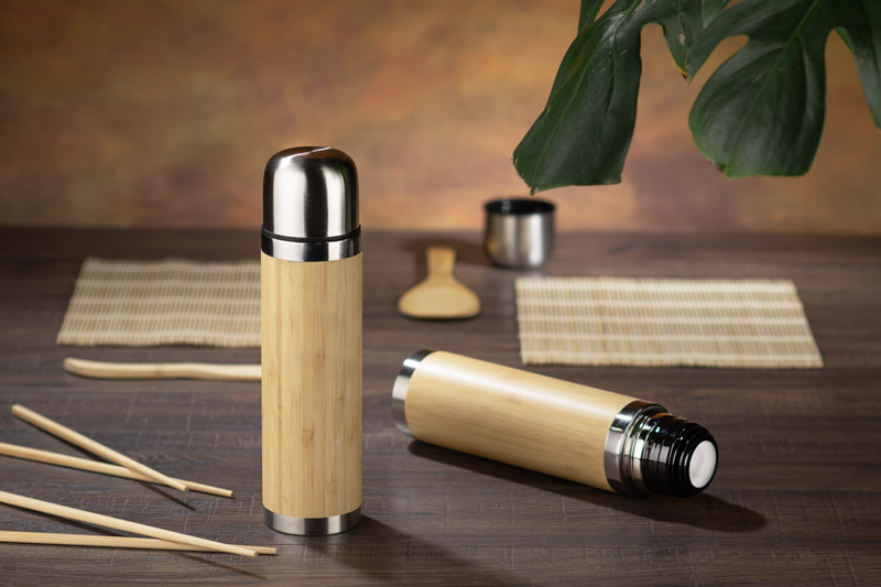 Termoss ir gan vizuāli estētisks, gan izturīgs un funkcionāls. Pateicoties vakuumam starp sienām, tas uztur temperatūru līdz pat 12 stundām. Tas ir izgatavots no augstas kvalitātes nerūsējošā tērauda. Ārējais slānis ir dabīgs bambuss.