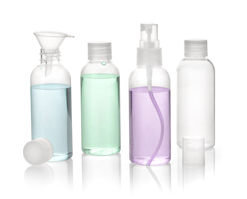Nelielu konteineru komplekts ir lieliska dāvana ceļotājiem. Jūs varat viegli ieliet tur savu iecienītāko kosmētiku un ņemt tos līdzi ceļojumā. Konteinerus var ņemt līdzi uz lidmašīnas klāja rokas bagāžā. Komplektā ir 4 80 ml pudeles, ieskaitot vienu ar smidzinātāju un papildu piltuvi kosmētikas ieliešanai.