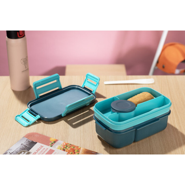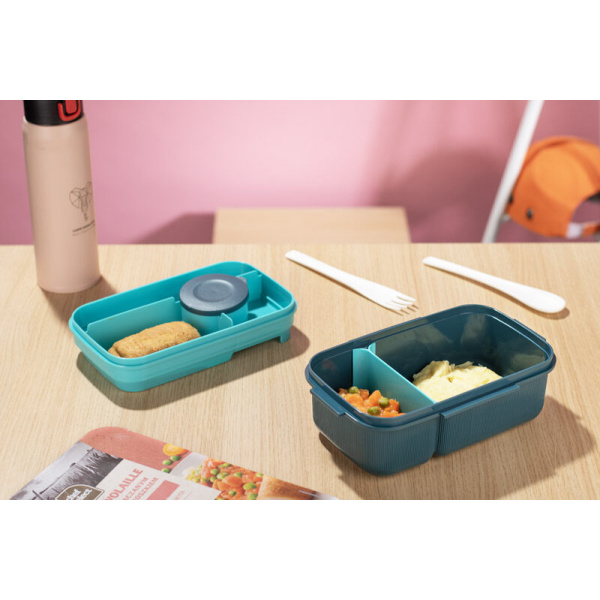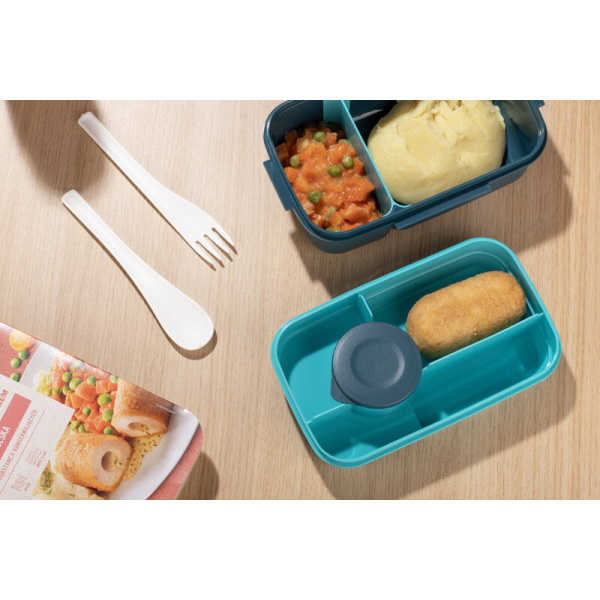 BILO konteiners ir praktiska pusdienu kaste ar gudru dizainu ērtai ēdienu uzglabāšanai. Galvenais konteiners ir sadalīts divos nodalījumos, un papildu ieliktnis satur vietu galda piederumiem, nelielu mērces trauku un divus mazākus nodalījumus. Tas novērš dažādu sastāvdaļu sajaukšanos. Galvenais konteiners ir sadalīts divos nodalījumos, un papildu ieliktnī ir vieta galda piederumiem, neliels mērces trauks un divi mazāki nodalījumi. Vākam ir blīve un četri bloķēšanas klipi, lai nodrošinātu ciešu blīvējumu un drošu pārtikas uzglabāšanu. Izgatavots no izturīgas plastmasas, tas labi darbosies ikdienas lietošanā. Zīmola iespēja padara to par funkcionālu reklāmas sīkrīku.