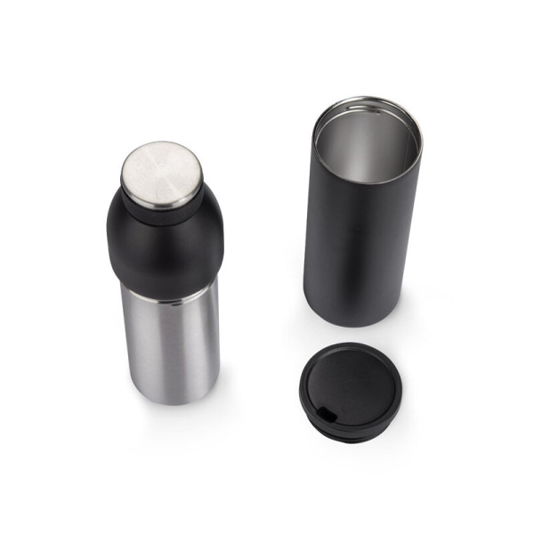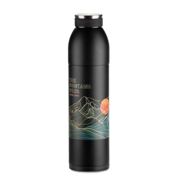 DUAL termiskā pudele ar ietilpību 600 ml ir risinājums, kas pārsteigs praktisku un oriģinālu reklāmas sīkrīku cienītājus. Tās unikāla iezīme ir noņemamā dibena, kas pārvēršas par papildu krūzi (400 ml) ar blīvēšanas iespēju. Jūs varat dzert tieši no pudeles, ieliet to krūzē vai pat dalīties ar kādu citu. Izmantojiet pielāgošanas pakalpojuma priekšrocības un padariet DUAL pudeli par izcilu reklāmas rīku jūsu zīmolam.